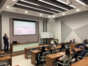 New Services in Pharmacy افتتحت الصيدلانية أوليفيا الفعالية بالترحيب بالحضور وبالمحاضرين عن طريق المحادثة الدولية وذلك بالتعاون مع أكاديمية العلوم الحياتية تطرق المحاضرون إلى أهمية